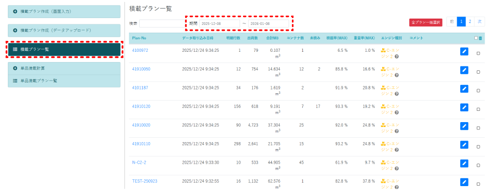 初回ログイン時は、ログイン日から過去1ヶ月以内に作成されたプランが表示されます。